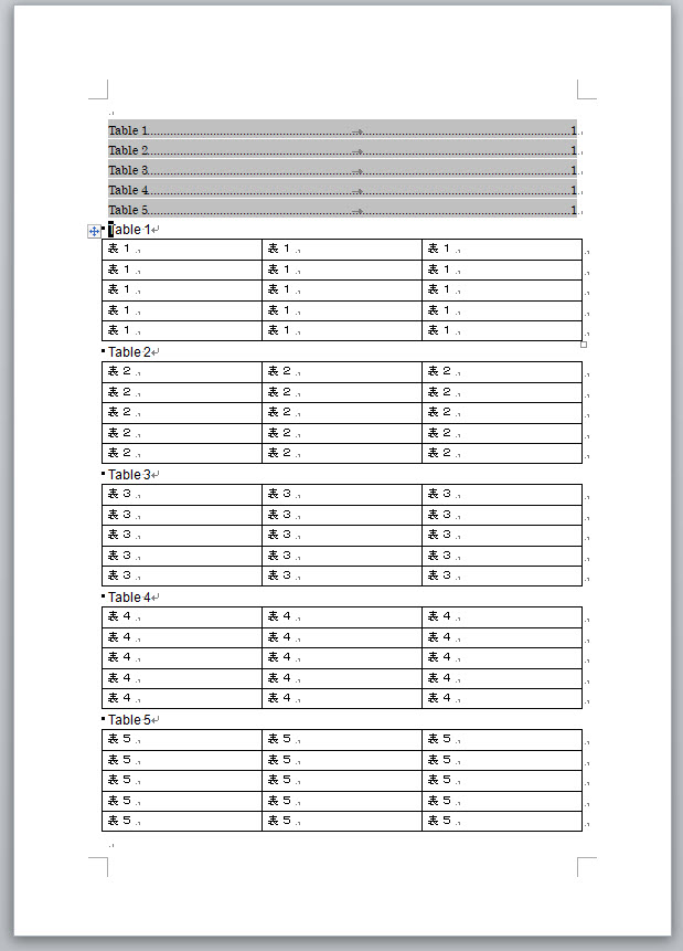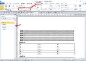 新規ファイルに表が書き出されます。表の直前にTable 1やTable 2 などの表番号を挿入します。