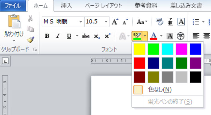 ただ、[検索する文字列] の蛍光ペンの色は指定できません。