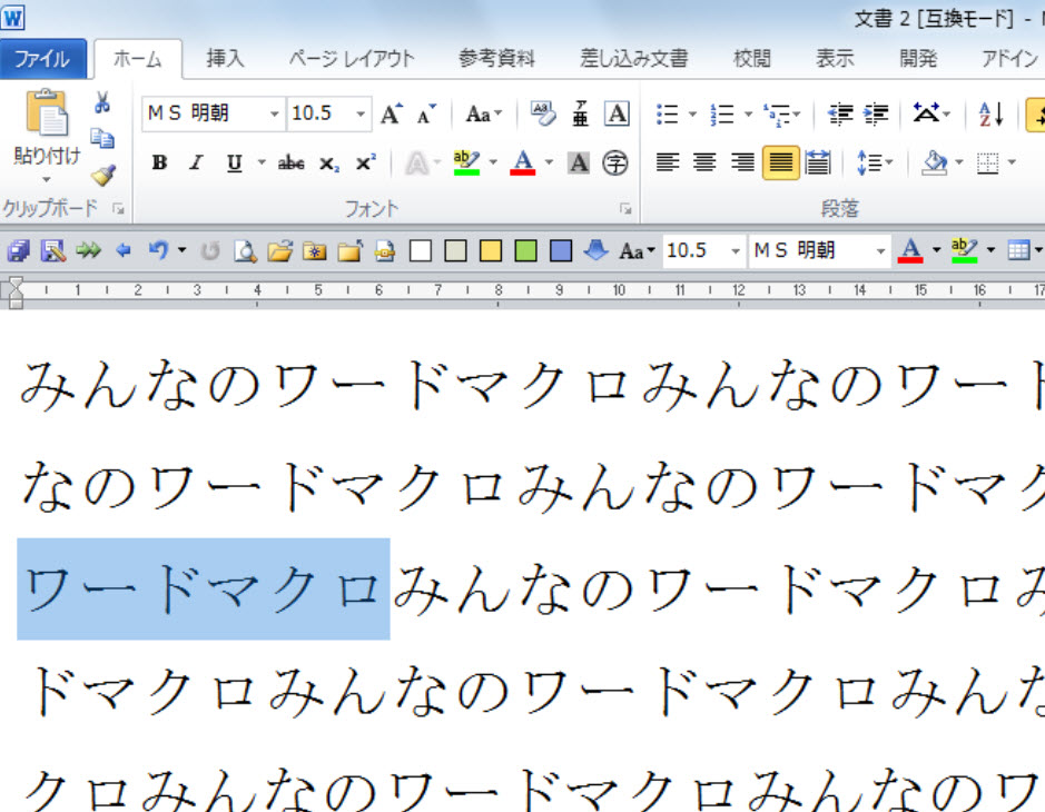 なお、条件分岐をしていますが、その理由は「選択されている文字列を文書内で検索するマクロ」に記載したとおりです。