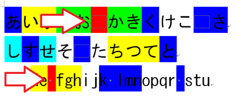 このように、連続して複数の色の蛍光ペンが並ぶ場合で、単独の半角・全角スペースに着色された蛍光ペン(矢印で示した赤色部分)は変換できません。