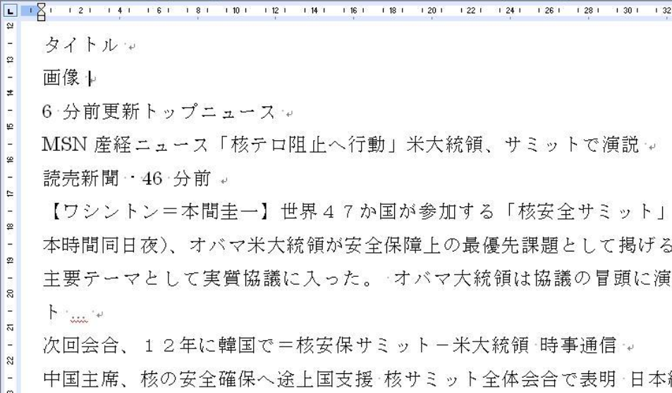 ウェブページの文字をコピーしてワードにはりつけると、タブ位置や行間などの段落設定や