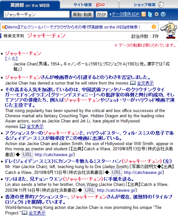 そして、英辞郎 on the Webで文字列を検索した結果を表示します。