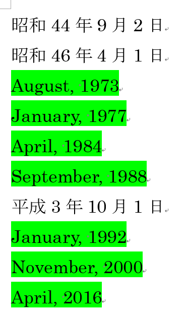 おなじみのワイルドカードを使って和暦を検索します。以下の表記は日付を探すのに便利なのでぜひコピペで使ってみてください。