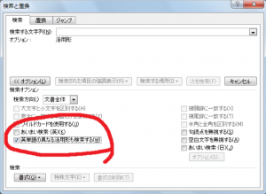 そこで、「検索と置換」ダイアログボックスの「英単語の異なる活用形も検索」機能を用います。