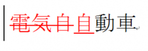 そうすれば、追記した1文字分に下線が引かれます。特許庁のルールでは、削除箇所については、前か後に下線がひかれていればいいはずなので、これで対処できます。