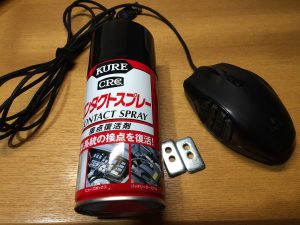 2番目の記事で紹介されているとおり、KURE (呉工業) コンタクトスプレーを使いました。