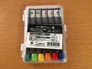 ちなみに、精密ドライバーは、100円ショップで売っているドライバーセットで間に合いました。#0のプラスドライバーはうまくかみ合わなかったので、セットに同梱されていたマイナスドライバーを使いました。