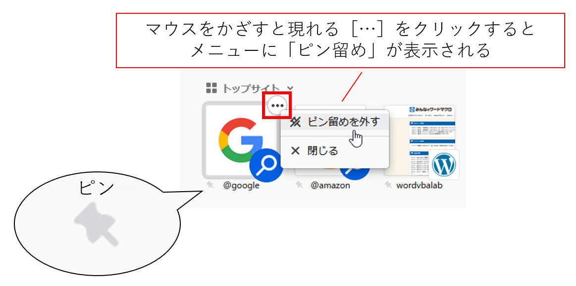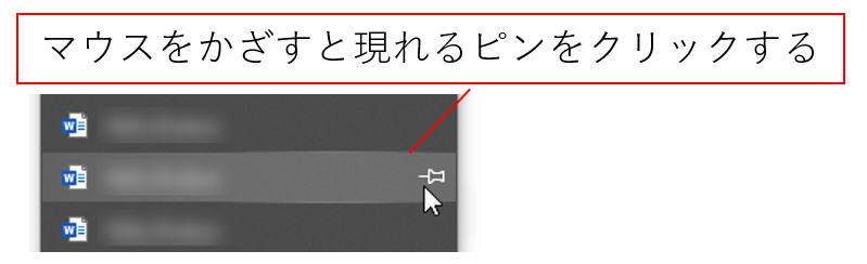 ここでもBackstageビューでの操作と同様に、ファイル名にカーソルを合わせる現れる「ピン」をクリックしてピン留めができるのです。