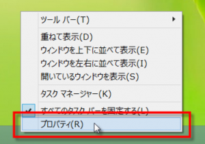 タスクバーで右クリックをして[プロパティ]をクリックします。