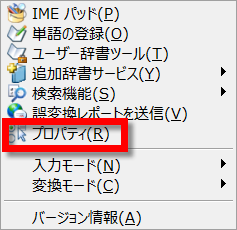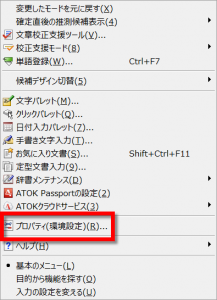 Ctrl + F10 でATOKのメニューを表示し、プロパティ(環境設定)を選択します。