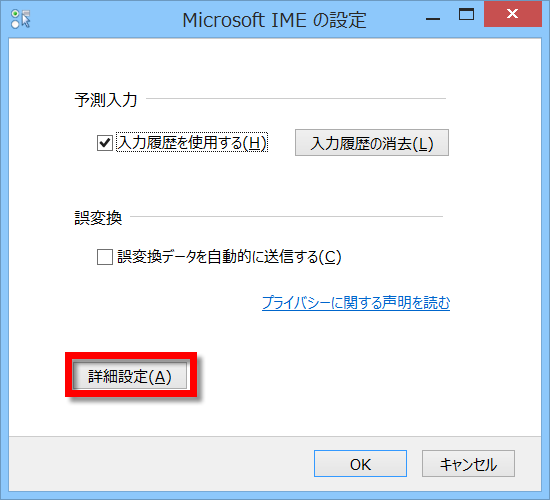 表示されたダイアログボックスで、以下のように入力・変換の設定を確認します。