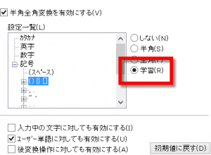 こちらも、常に半角にしなくてもデフォルトである「前回の変換結果に従う」でもいいですね。