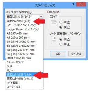以下の2つのスライドサイズの場合にだけ対応しています。