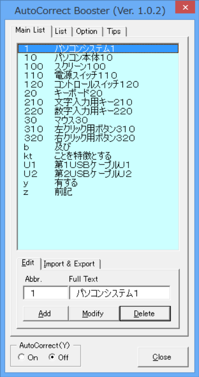 特許明細書を書かれている技術者の方々であれば、参照符号を入力しただけで自動的に構成要素名が入力できたらうれしくないですか?