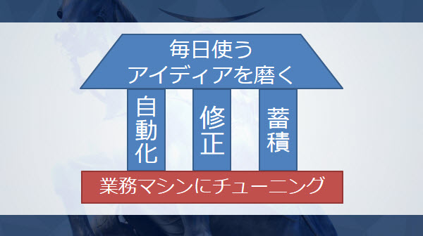 知識を蓄積して、必要に応じて修正して、小さな作業をできるだけ自動化するような姿勢でチューニングしていきましょう、ということです。