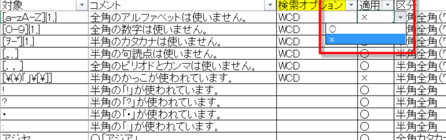 例えば、和文特許明細書では、全角数字や半角数字等が使われます。これらを全てNGとしてチェックされたら困りますから、以下のように変更します。
