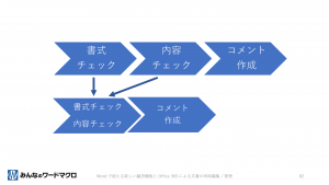 それに対して同時に編集できるのであれば、2つの作業工程の担当者がSkypeや電話で相談をしながら同時に作業にあたれるのです。私の会社でも、翻訳文を仕上げるときに英語ネイティブチェッカーによる英文チェックと私の様式・書式チェックを同時に行ったことがあります。