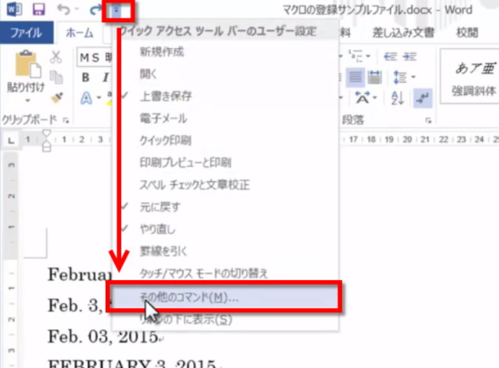 【動画】Wordマクロをクイックアクセスツールバーから実行する