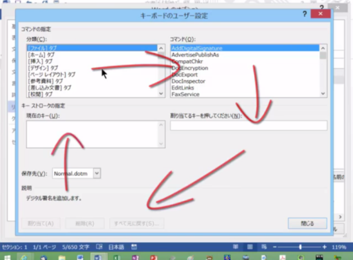 クイックアクセスツールバーのボタンをクリックするためにマウスに持ち変えるのではなく、文字を書きながら特定のキー操作でマクロを実行できるようになります。