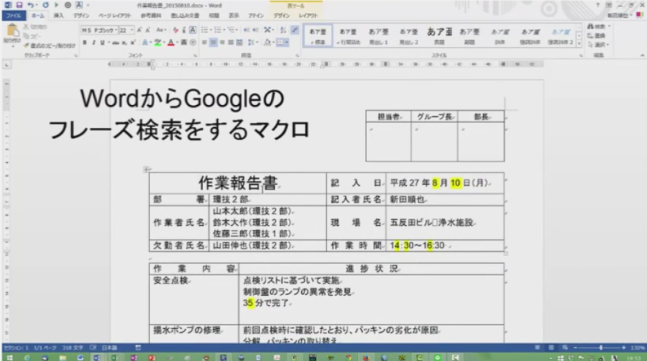 Wordマクロを使う場面は様々ですが、よくあるネット検索を例にしてみました。