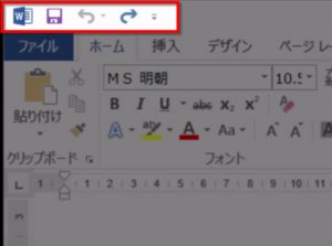 クイックアクセスツールバーというのは、Office製品のウィンドウのタイトルバーの左端にある部分です。