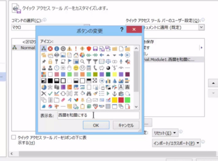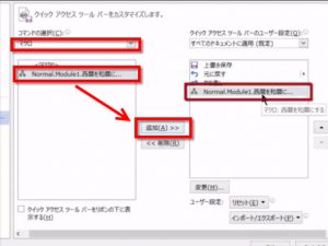 では、マクロ用のボタンを追加してみましょう。以下のステップです。