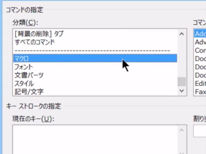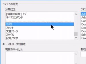 まず、左上の[分類]欄で「マクロ」を選択します。