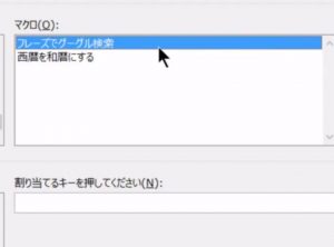 次に、右上の[マクロ]欄で「フレーズでグーグル検索」を選択します。