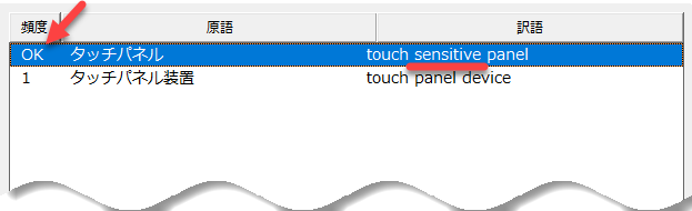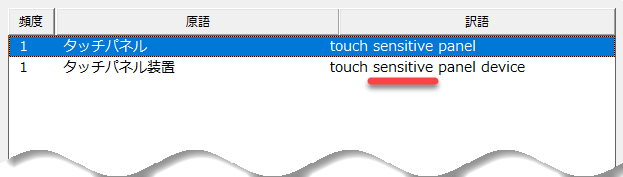 すると、「タッチパネル装置」の訳語にある「touch panel」も「touch sensitive panel」に変更されます。