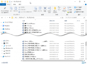 対象となるファイルを1つのフォルダにまとめます。ここでは、例として「サンプルファイル」フォルダとし、フォルダ中に数十のファイル(Wordファイル、Excelファイルなど)が保存されているとします。