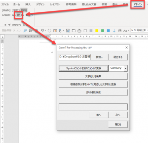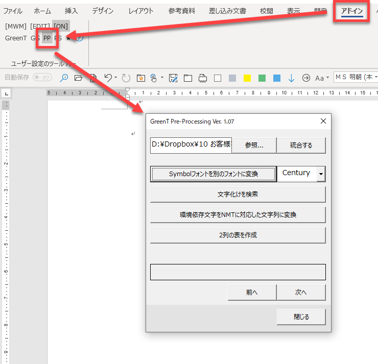 以下の手順で[アドイン]タブの[PP]ボタンをクリックして[Pre-Processing]ダイアログを開きます。