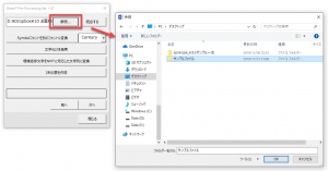 [参照]ボタンをクリックして対象のフォルダ(例では「サンプルファイル」フォルダ)を選択します。選択したときにフォルダ内のファイル(複数のWordファイルやExcelファイル)は表示されませんが不具合ではありません。気にしないでください。