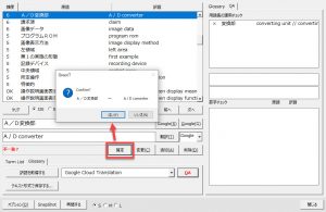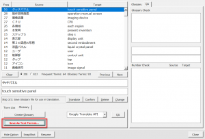 すべての訳語が決まったらファイルに出力します。テキスト形式で保存をします。翻訳で用いますので、わかりやすい場所に保存をしてください。
