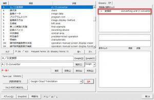個々の用語集で定義されていた言葉がすべて列挙されています。このときに、優先される用語集([Glossary]タブで上の方に登録されている用語集)の訳語が先に表示されますので、選択しやすいと思います。