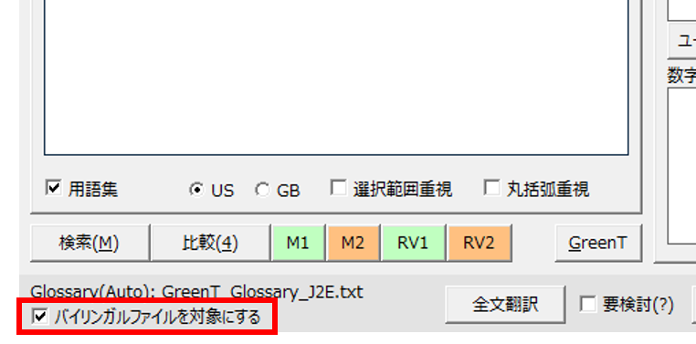 また、今回はバイリンガルファイルを対象とした翻訳なので、以下の[バイリンガルファイルを対象にする]もオンにしてください。