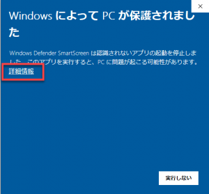 上記のダイアログが表示されず、以下のメッセージが表示された場合には、[詳細情報]をクリックしてください。