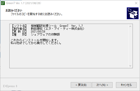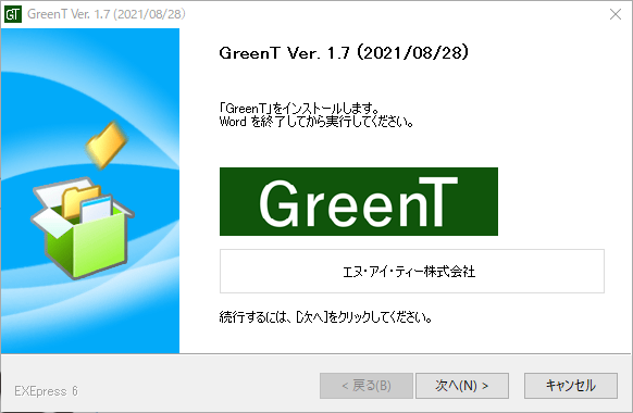 以下のように表示が変わります。[実行]ボタンをクリックするとGreenTのインストーラーが起動します。