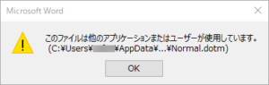 Wordを終了せずにインストールを開始すると、以下のようなエラーメッセージが表示されます。インストール(アップデート)自体は完了するのですが、インストールのためにWordを二重で開いてしまうためこのメッセージが表示されます。