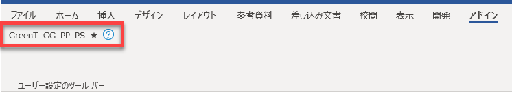 6.Word起動後に[アドイン]タブに以下のボタンが表示されていればインストール成功です。