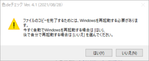 また続いて表示される以下のメッセージの通り、Windowsを再起動するとアップデートが完了します。