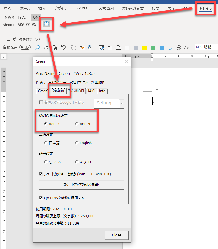 ニューラル機械翻訳の支援ツール「GreenT」と「KWIC Finder」を連携させる方法を紹介します。[GreenT]ダイアログからショートカットキーの [Alt] + [U] でKWIC Finderを呼び出せるようになります。
