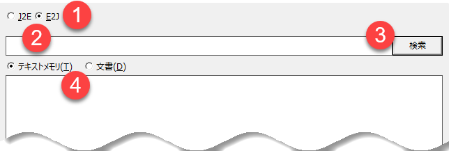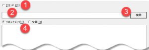 - [テキストメモリ]ラジオボタンと[文書]ラジオボタンで検索対象を変更できます。