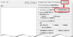 [GreenT]ダイアログの[Setting]タブの[自動検索を使用する]チェックをオンにすると、[前へ]ボタンや[次へ]ボタンで[原文]欄に文字を取り込むたびに、[Power Search]ダイアログで検索できます。