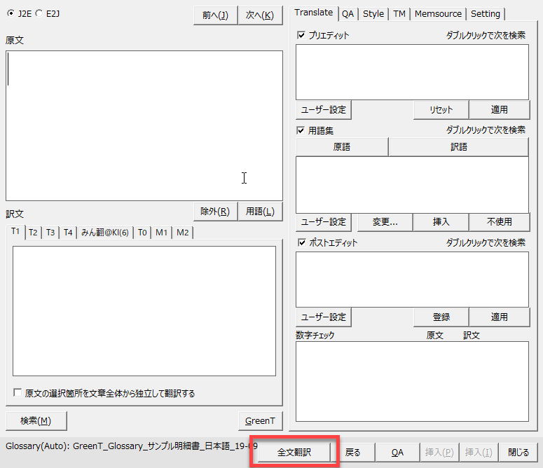 この全文翻訳の目的は、用語集を用いて正しい専門用語が使われた雑な訳文を素早く作るということです。訳文のQAチェックもするので、結果に応じて訳文を修正できます。