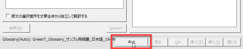 翻訳中に中止する場合には、[中止]ボタンをクリックしてください。