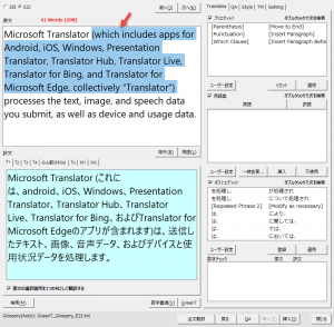 as well as 以降が別の文「デバイスと使用状況データも同様である。」になりました。あと、原文の「collectively “Translator” 」の訳が違うので修正の必要があります。