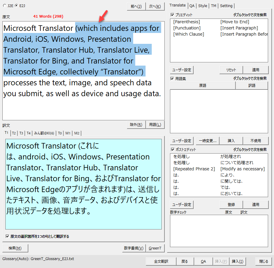 この状態で[GreenT]ボタンをクリックして翻訳をします。