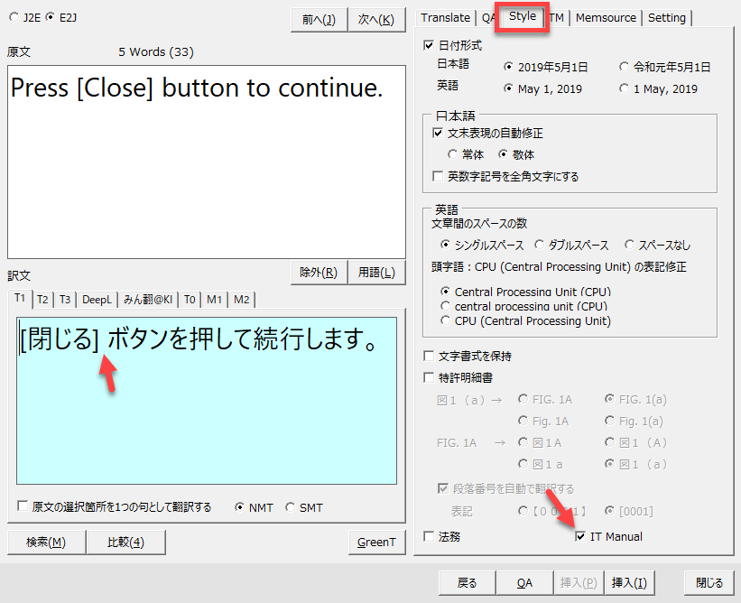 ITマニュアルの英日翻訳においても、スタイルガイドの処理の1つを自動化しています。