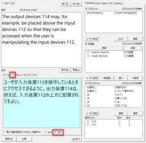数字は相変わらず間違っていますが、用語が正確に適用され、かつ特許クレームの構文が表現されています。右下の数字チェック欄を参考にすれば数字のミスは拾いやすいので、この出力が一番修正しやすい結果となりました。