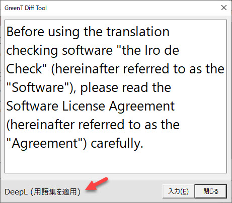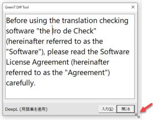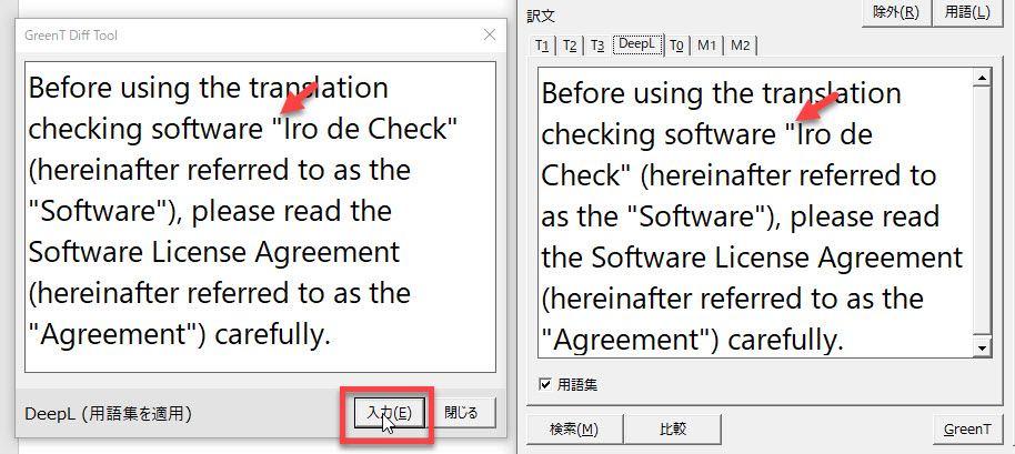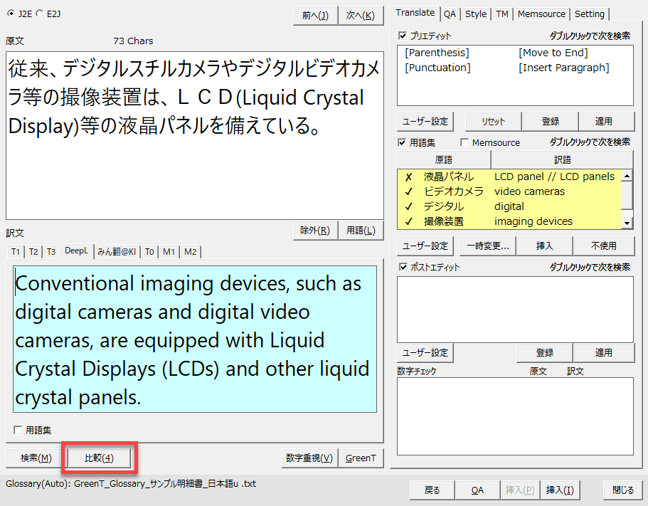 [GreenT]ボタンで訳文を出力したら、[比較]ボタンをクリックします。